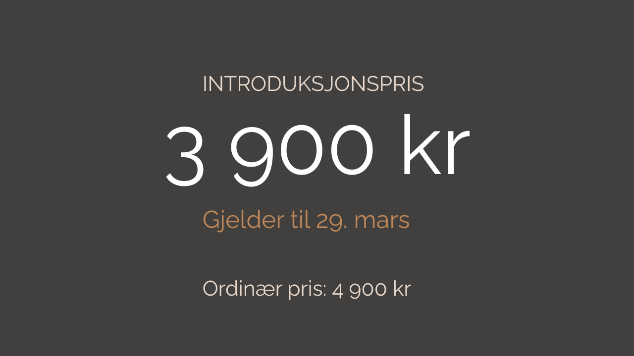 OPPSTART 14. APRIL – INTROPRIS 3 900 kr